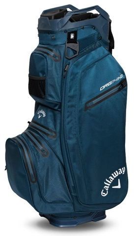 Callawayn Org 14 HD on vedenpitävä golfbägi, jossa on 14-osainen jakaja, kärry-ystävällinen Lowrider™-muotoilu ja kymmenen taskua, mukaan lukien eristetty kylmätasku. 10K-vedenpitävä materiaali ja tiivistetyt saumat. Paino: 3,1 kg.